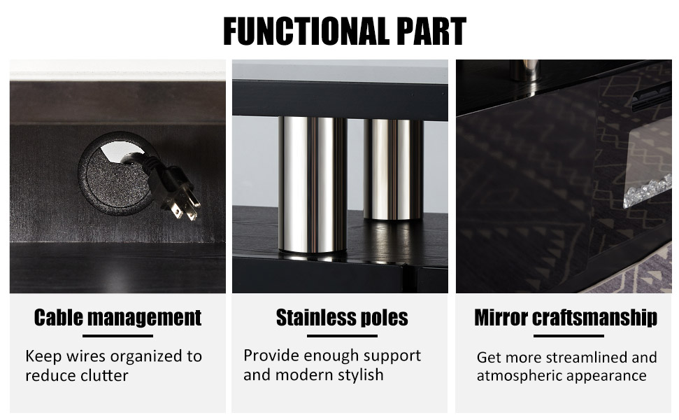 Brand AMERLIFE Power Source Corded Electric Product Dimensions 14.1"D x 70.2"W x 22.8"H Material Engineered Wood, Tempered Glass, Stainless Steel Finish Type Wood grain Installation Type Freestanding Heat Output 5100 British Thermal Units Special Feature 70" Modern High Gloss, Adjustable Flame&LED, Temperature Control & Time Setting, 36" Electric Fireplace, 2 Tier Design Style Modern Color Black Room Type Living Room, Bedroom Included Components Tv stand, Fireplace Item Weight 86.35 Pounds Model Name Large Storage Fireplace TV Stand Shape Rectangular Power Consumption 1500 Watts Warranty Type One Year Item Weight 86.4 pounds